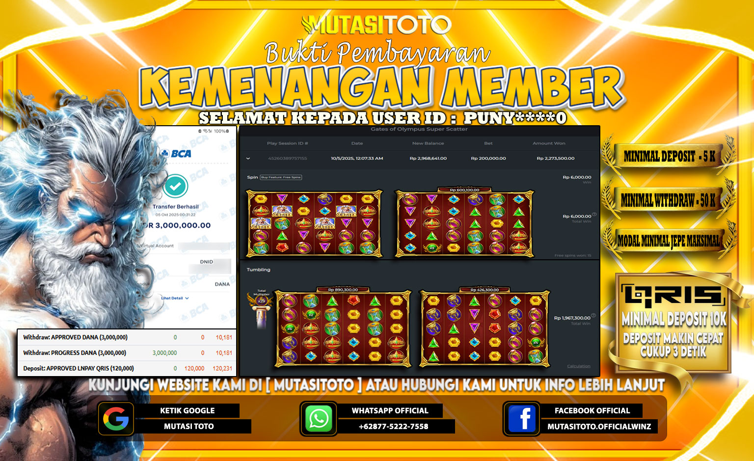 Selamat kepada member kami atas kemenangan besar nya bersama “MutasiToto”