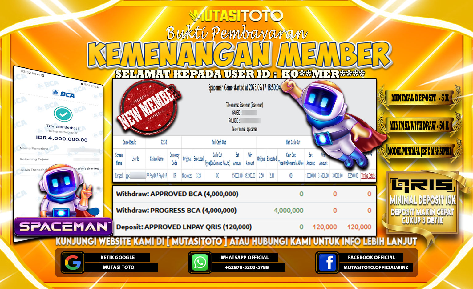Selamat kepada member kami atas kemenangan besar nya bersama “MutasiToto”