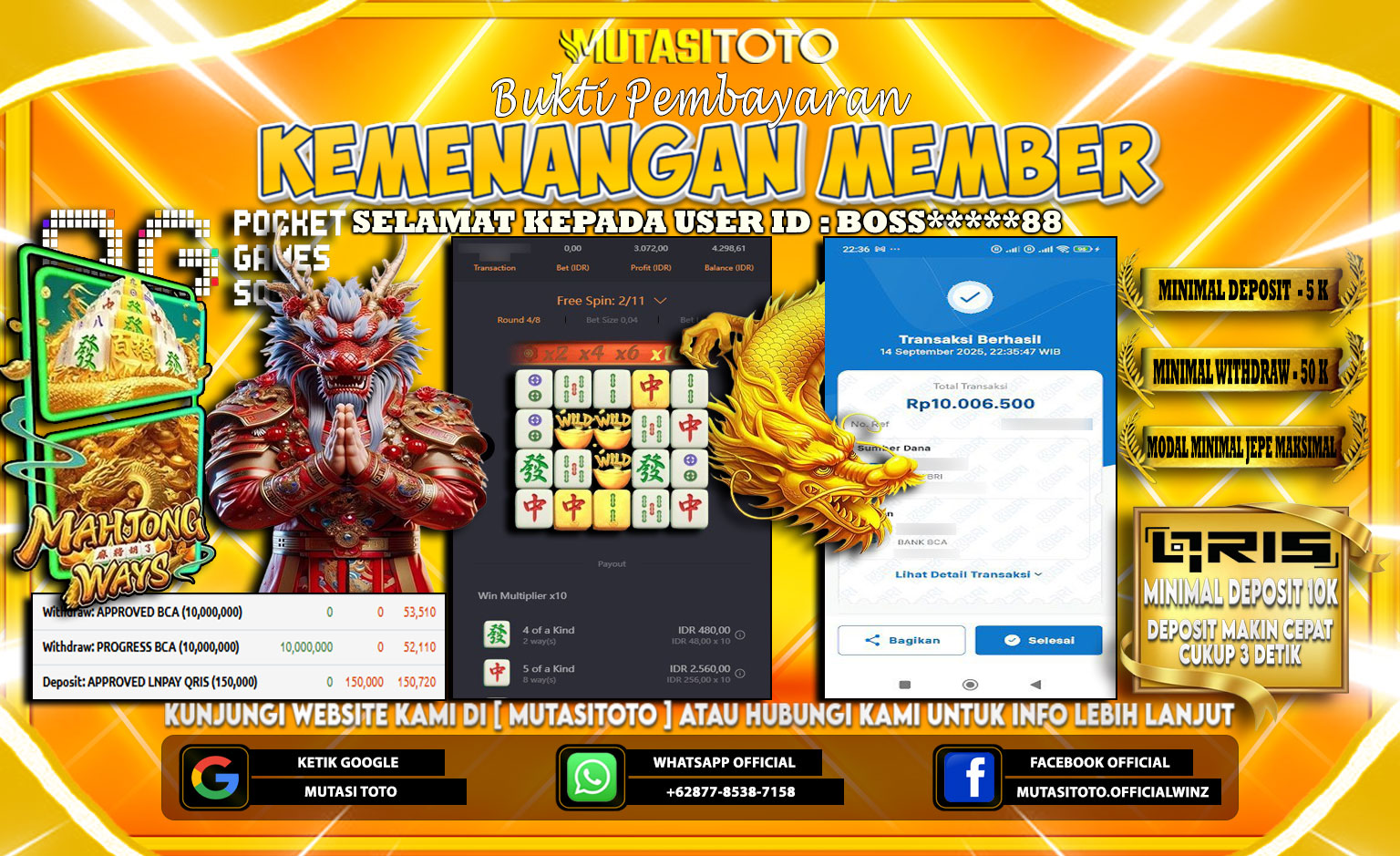 Selamat kepada member kami atas kemenangan besar nya bersama “MutasiToto”