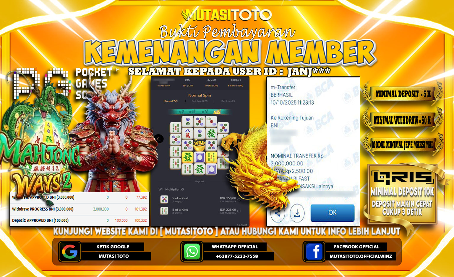 Selamat kepada member kami atas kemenangan besar nya bersama “MutasiToto”