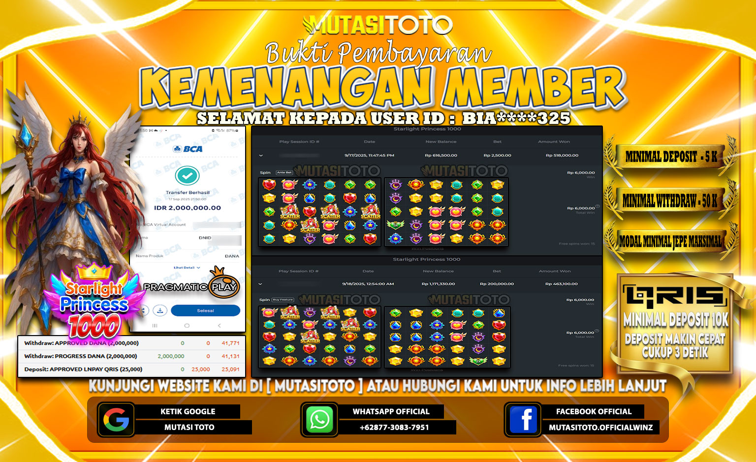 Selamat kepada member kami atas kemenangan besar nya bersama “MutasiToto”