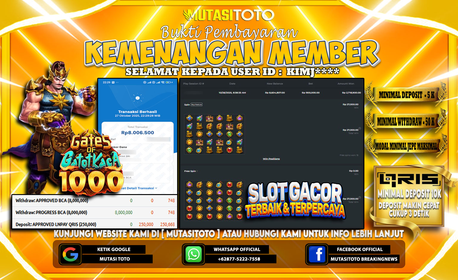 KEMENANGAN MEMBER BERMAIN GATES OF GATOT KACA 1000