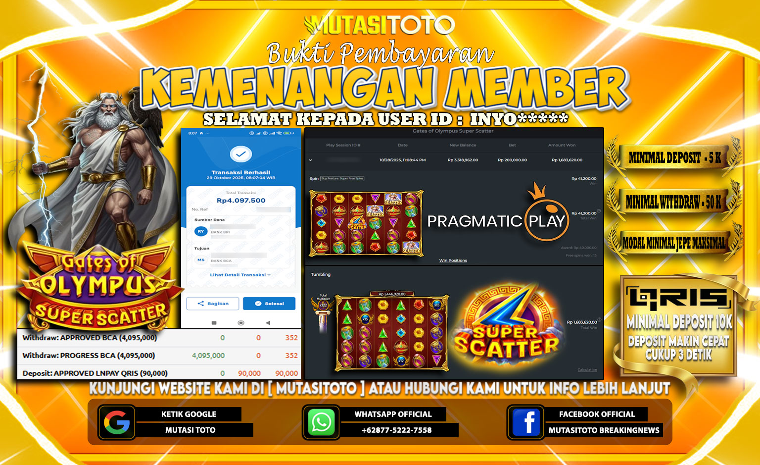 Selamat kepada member kami atas kemenangan besar nya bersama “MutasiToto”
