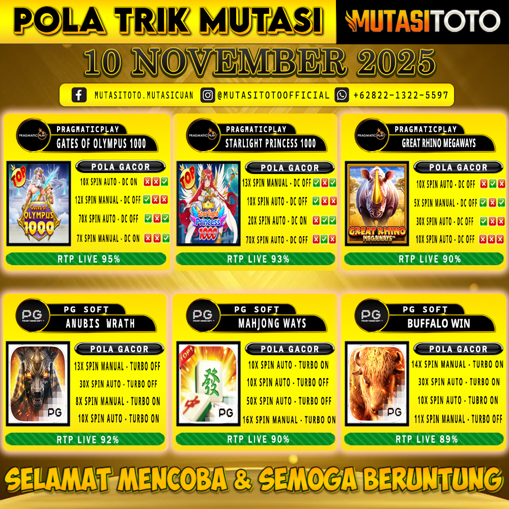POLA GACOR TERUPDATE 10 NOVEMBER 2025 – MUTASITOTO
