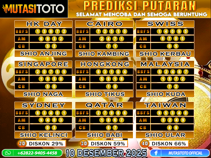 PREDIKSI ANGKA TOGEL “MutasiToto” 10 DESEMBER 2025