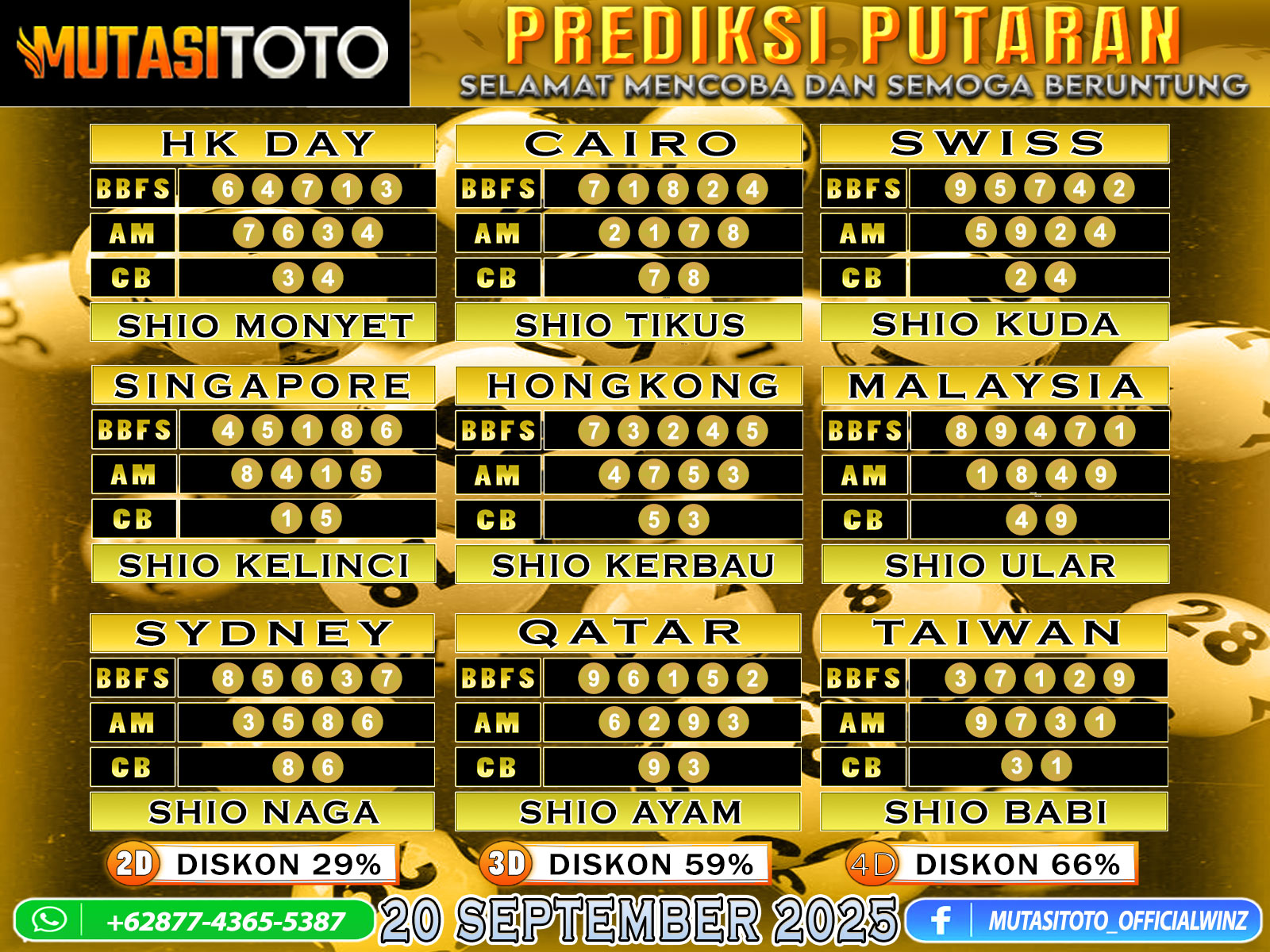 PREDIKSI ANGKA TOGEL “MutasiToto” 20 SEPTEMBER 2025