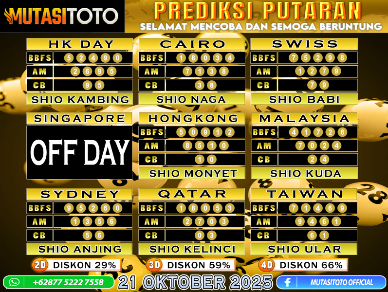PREDIKSI ANGKA TOGEL “MutasiToto” 21 OKTOBER 2025
