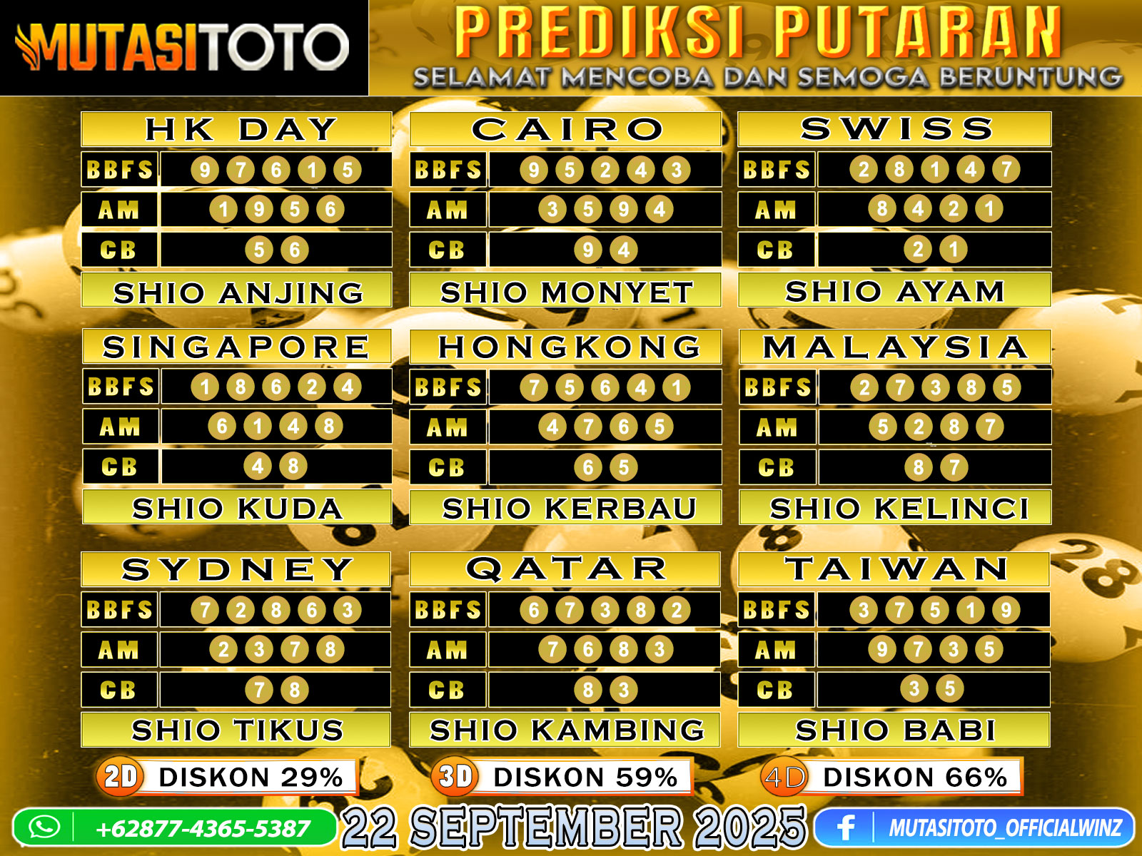 PREDIKSI ANGKA TOGEL “MutasiToto” 22 SEPTEMBER 2025