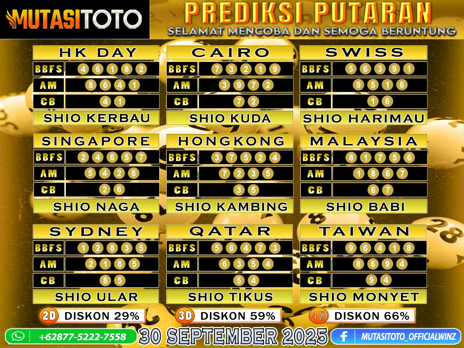 PREDIKSI ANGKA TOGEL “MutasiToto” 30 SEPTEMBER 2025